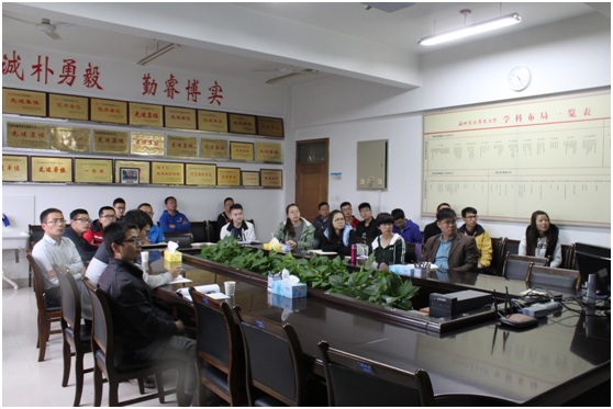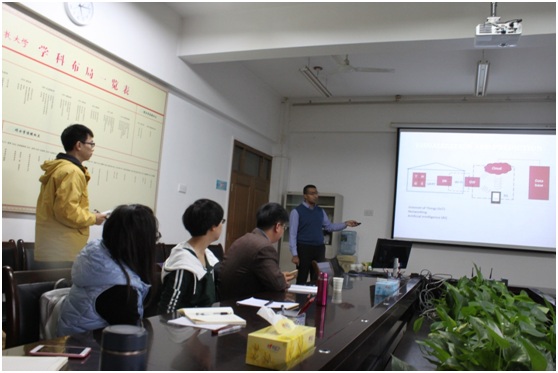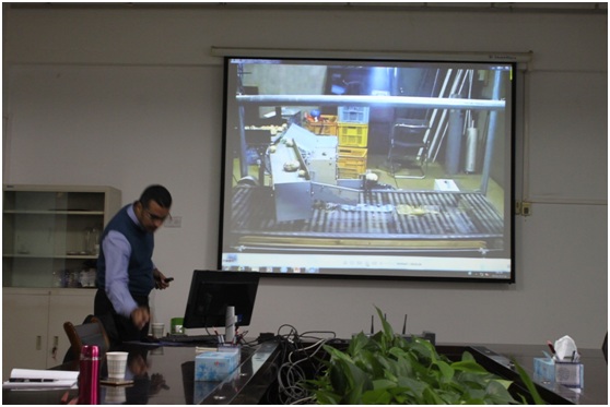 报告会上,Ahmad Ali AL-Mallashi博士结合自己的工作经验,讲述机电一体化在智能农业的发展状况,并以potato为例,详细讲解了智能机械在 Preparation, Planting, Monitoring, Harvesting四个方面的应用原理。重点讲解并用视频演示了potato的分选过程和分选原理。期间,Ahmad Ali AL-Mallashi博士演示了自己在工作实践中拍摄的智能农机的工作过程。报告结束后,Ahmad Ali AL-Mallashi博士热情解答了老师和同学们提出的相关专业问题,并与老师和学生进行了深入的交流和讨论。