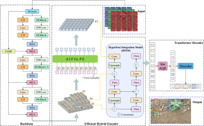 近日,尤物视频 黄玉祥教授团队在株间机械除草系统关键技术研究方面取得了新进展。研究成果《RT-MWDT: A lightweight real-time transformer with edge-driven multiscale fusion for precisely detecting weeds in complex cornfield environments》发表于中科院一区TOP期刊《Computers and Electronics in Agriculture》。论文第一单位为尤物视频 海南研究院,硕士研究生张志熠为论文第一作者,郑智旗博士为论文通讯作者。