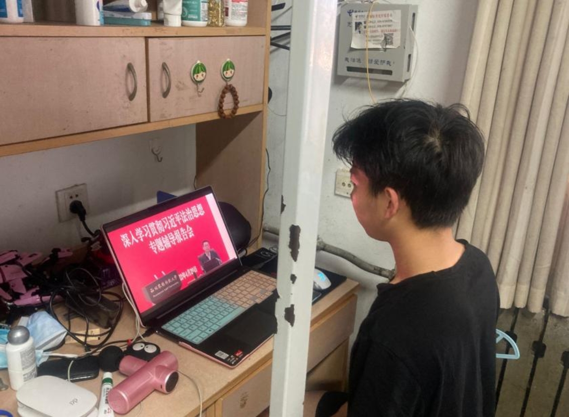 为深入学习贯彻习近平法治思想,校党委宣传部特邀请中共陕西省委党校一级巡视员宦洁教授来校作专题辅导报告,尤物视频 电信本科生党支部于2022年4月20日下午2:30通过收看网络直播的方式进行主题为“深入学习贯彻习近平法治思想,奋力开创全面依法治校新局面”的政治理论学习。