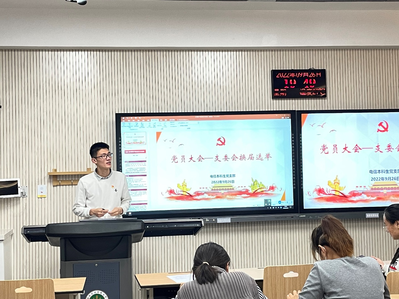 2022年9月26日晚7:30,尤物视频 电信本科生党支部于N8904开展了2022-2023学年支委会换届工作,支部书记伍景涛,全体党员参会。