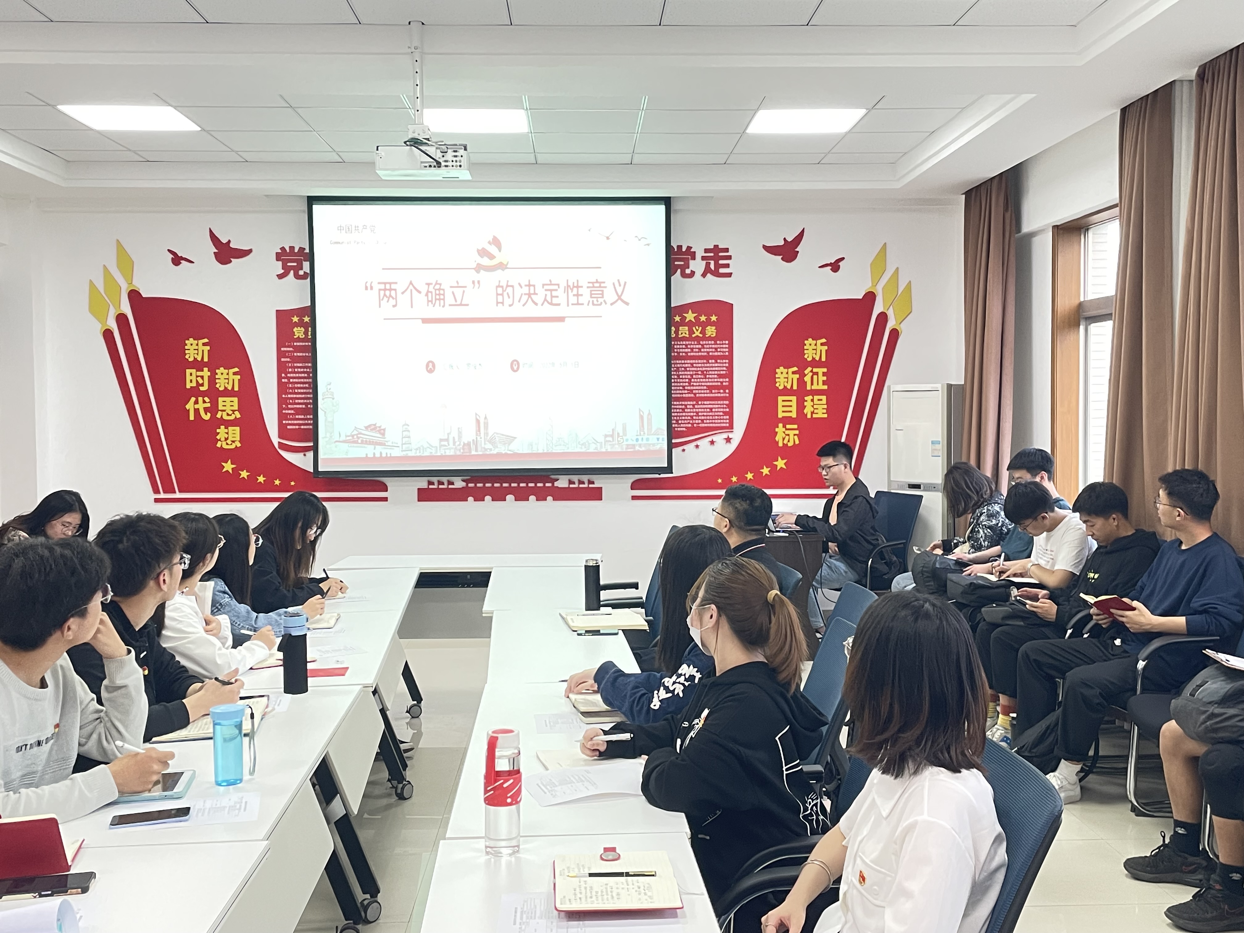 为了深刻领会“两个确立”的内在联系及其背后的深层逻辑,增强支部党员践行“两个确立”的思想自觉、行动主动,5月11日,尤物视频 电信本科生党支部开展以“深刻领会‘两个确立’的决定性意义”为主题的政治理论学习,深入浅出的讲解“两个确立”的重要性和发展历程。
