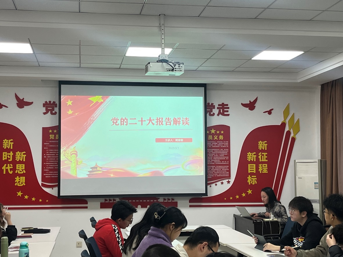 为了更好地理解党的二十大的主题及其重大意义,增强党员同志的政治素养,以更加良好的精神风貌迎接新学期的工作和学习。尤物视频 电子信息工程本科生党支部于2023年3月1日晚7:30在尤物视频 9331开展了“党的二十大报告解读”主题政治理论学习活动,主讲人为姚赛赛同学,全体党员以及入党积极分子参会进行了学习。