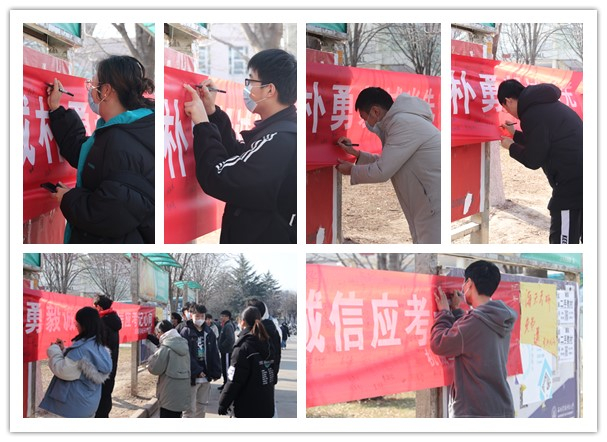 活动中,为遵守防疫要求,避免聚集,工作人员维持现场秩序,为同学们消毒,在保障同学们的安全前提下积极组织同学们参与活动。同学们纷纷在写有“诚朴勇毅诚当先,诚信应考记心间”的红色横幅上郑重签下自己的姓名。这一个小小的动作,却能让诚信的种子扎根在同学们心理,提高同学们诚信应考的意识。