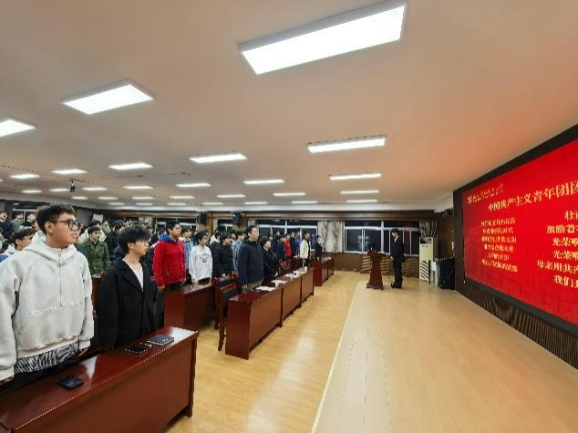 仪式在庄严嘹亮的团歌声中拉开帷幕,全体参会人员肃立齐唱,青春的旋律里满是青年学子的蓬勃朝气。