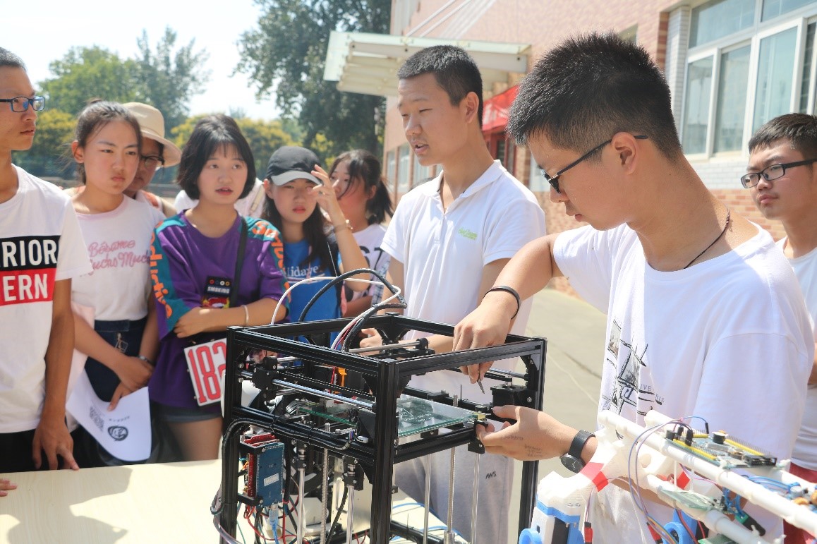 随后,学院创客之家成员为新生展示了3D打印、激光切割产品,并细致地讲解了产品的加工过程和所需设备,以及其强大的功能用途。除此之外,创客成员房文泰现场表演了四旋翼无人机的飞行操作以及机械臂的使用,赢得了场下新生们的阵阵热烈掌声。部分新生甚至申请亲自操作,在科创小组成员的耐心指导下操作的十分成功,收获知识技能的同时,也收获了快乐。