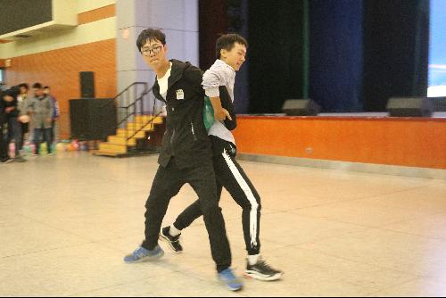 作为现场亮点的互动游戏背对背夹球跑形式新颖、趣味横生,富有趣味的游戏更是吸引了现场同学们的广泛参与,现场气氛热烈,高潮迭起。