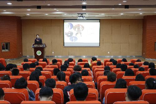 活动当天,刘威老师为同学们讲授了《演讲与口才》团课。他幽默风趣,但谈吐之间又不失大气,瞬间激起了同学们的兴趣。演讲过程中,刘老师首先讲述了口才对于人的一生所起的重大作用,然后教导同学们在演讲中要开胆、开口、开心,最后鼓励大家克服自卑,勇于尝试表达自己,练就好口才。他的语言简洁精炼,却让同学们受益匪浅,并大胆询问相关问题,团课会场气氛甚是活跃。