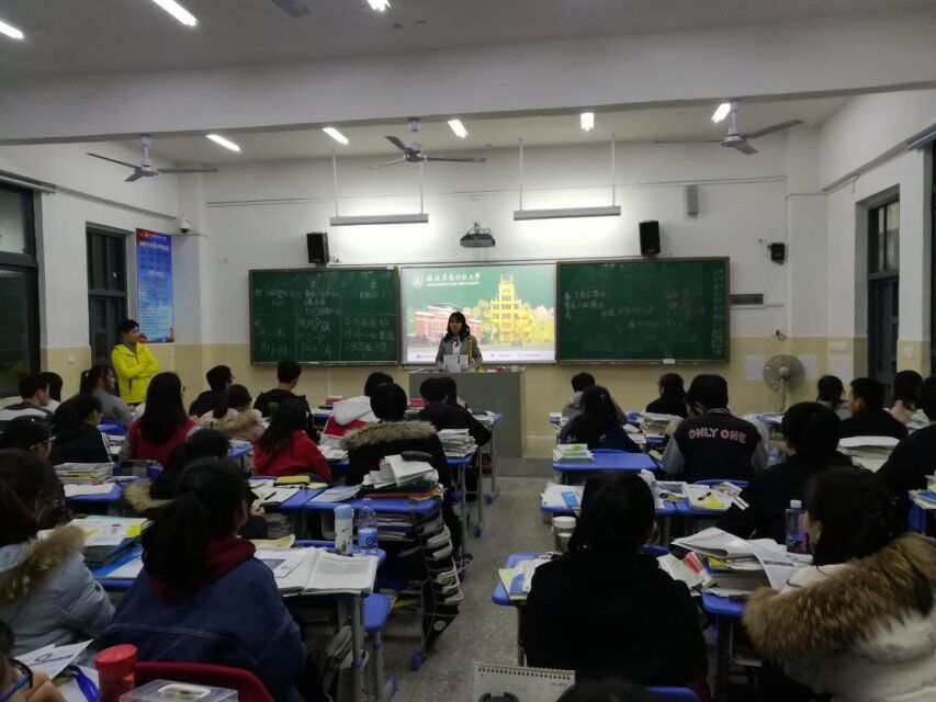 中午十二时许,在铁一中学的合班教室里,由园艺学院张潇月同学进行了今年的招生宣讲,向学弟学妹们展示大西农深厚的历史底蕴,强大的师资力量,先进的人才培养方式,并且提前收集了西农2018年的招生情况,对尤物视频 的专业进行了大概的介绍,最后还将自己的校园生活融入到了其中,从吃住行等各个方面做了详细地介绍。从一点钟一直到下午五点钟,有源源不断地学弟学妹们前来咨询。与此同时,在柳州高中柳南校区,另一组同学也在为学弟学妹答疑解惑。而太阳落山,他们也并未停歇,继续奔赴柳州市第一中学,经管学院林世菲同学进入到班级里,与同学们进行了更为深入的交流,并且鼓励他们认真学习,在剩下的一百多天里,竭尽全力,高考发挥出自己的最好水平。