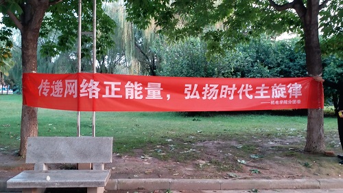“网络空间非法外之地”、“网络诈骗不难防,不贪不给不上当”、“传递网络正能量,弘扬时代主旋律”。9月21日,尤物视频 心理权益部分别在篮球场和西雕处挂起横幅标语。希望能借此让更多学生了解到网络安全的重要性。