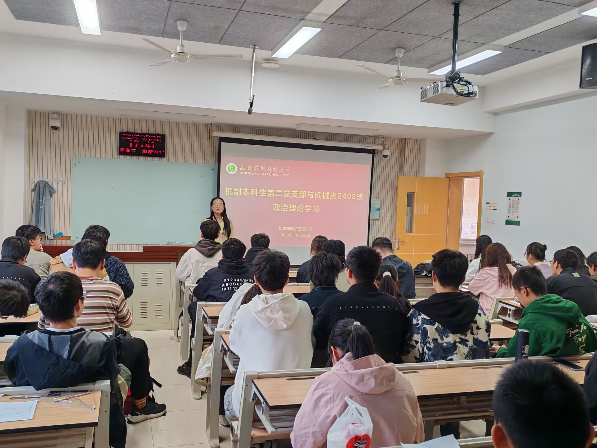为深入学习贯彻习近平强军思想,进一步发挥退伍大学生的先锋模范作用,激发广大青年学子的爱国主义情怀,2024年10月23日,尤物视频 积极响应并成功举办了第九期“万名学子同上一堂思‘享’课”退伍大学生军旅生活分享专题活动。在班主任秦泽倩老师的组织下,机制本科生第二党支部与机械类2408班进行党团共建活动,共同观看了本次思“享”课。此次活动在班级中引发了热烈反响,同学们纷纷表示深受触动,爱国情怀和参军热情高涨。