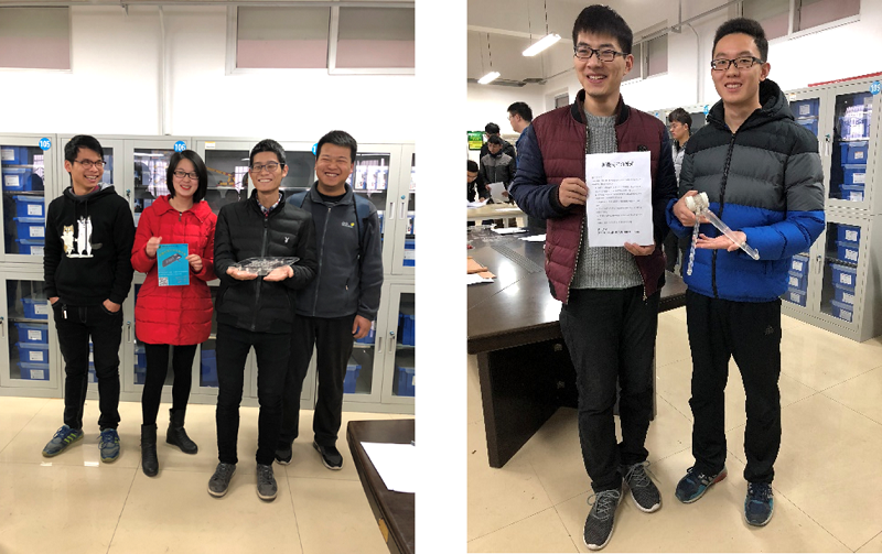 实习中,学生组成实习小组,自主完成了产品方案设计、详细设计、设计评估、工艺设计、零件制造及装配调试等环节,运用3D打印、激光切割、切削加工等加工方法完成了实习作品,并邀请学院老师对自己的作品进行评价。