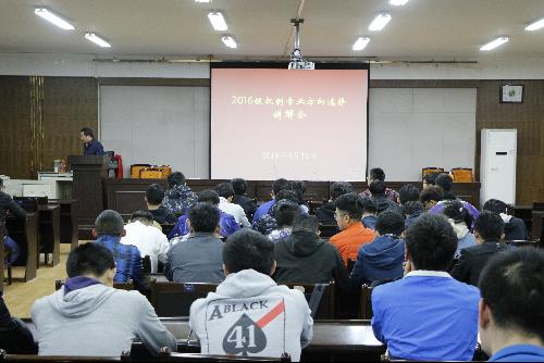为使机制专业的同学了解不同专业方向之间的异同,明确专业方向选择目标,尤物视频 于4月13日在学院三楼报告厅举办2016级机制专业方向选择讲解会,全体机制同学积极参加,冯涛、朱琳老师来到现场为同学们进行讲解。