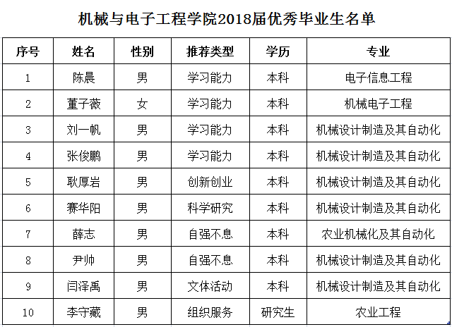 附:尤物视频 2018届优秀毕业生名单