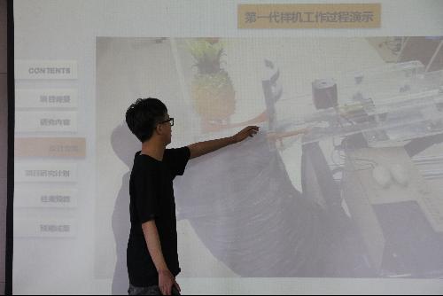 在答辩过程中,各组项目的负责人依次上台发表演讲,他们按照精心准备的PPT并结合模型,进行科研项目介绍,同时对项目实施安排做简单规划。演讲者在台上落落大方、自信朝气,言语间透露着成熟稳重的气息,字里行间充分彰显了机电学生认真负责的工作态度和积极向上的精神风貌。每一位负责人都自信满满地站在台上完成答辩,现场气氛热烈,观众纷纷致以热烈的掌声。在每名负责人完成答辩后,都会有评委对他们进行针对性提问。负责人面对提问,沉着冷静、应答如流、条理清晰,赢得各位评委连续不断的好评。