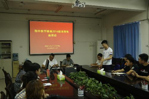 于5月14日晚在二楼会议室召开期中教学检查2016级本科生座谈会,学院主管教学工作的副院长陈军教授、党委副书记张朝红老师、2016级辅导员以及部分2016级本科生代表参加会议,会议由张朝红副书记主持。