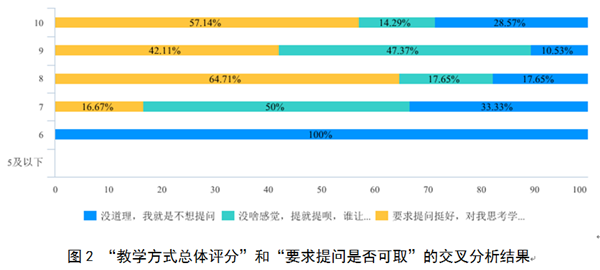对于“这种教学方式的总体评分”和“强制提问的做法是否可取”进行交叉分析,得到结果如图2所示。