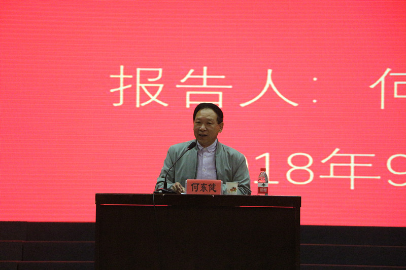 在报告中,何东健以“厦门大学‘洁洁良’事件”、“湖南城市学院新生辱华事件”切入主题,围绕爱国、责任、志向、学业、心理等五个方面展开讲述。他指出,爱国,是一个人立德之源、立功之本。大学时代是人生成长的重要阶段,是世界观、人生观和价值观形成的关键时期,要把自己的理想同祖国的前途、把自己的人生同民族的命运紧密联系在一起,扎根人民,奉献国家;他畅谈新生应将责任和社会发展结合起来,牢记国家和民族的责任,为智慧农业发展勤奋学习,以首届农民丰收节的实例说明大学生肩负着为国家发展现代农业提供现代工程技术手段的重任;他鼓励新生立鸿鹄之志,做中国梦的奋斗者,坚定理想信念,确立自身长期目标和短期目标,培养自我管理能力和坚韧不拔的自我激励能力;谈到学业,他与新生畅谈“工匠精神”,希望同学们求真学问,练真本领,掌握科学的学习方法,精益求精、追求卓越;最后,他衷心希望青年学子能“保持一个乐观的心态,培养自身健全人格,不畏挫折,勇于攻坚克难去追梦”。