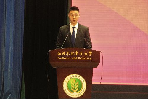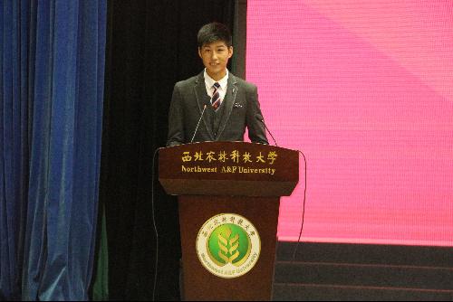 在校高年级代表,2015级机械设计制造及其自动化专业张鑫宇同学分别从重视学习、保持热情、寻找方向三个方面为2018级萌新们送去学长学姐的关怀,“上大学不是解放”,“只有体验到真正的荣耀,才能成为人生的王者”,现场妙语连珠,掌声不断,贴近“00后”的话语让新生感受到了一份特别的理解和鼓励。“心中壮志常在,脚下须臾不息”,相信2018级新生会以梦为马,不负韶华,书写自己的西农篇章。