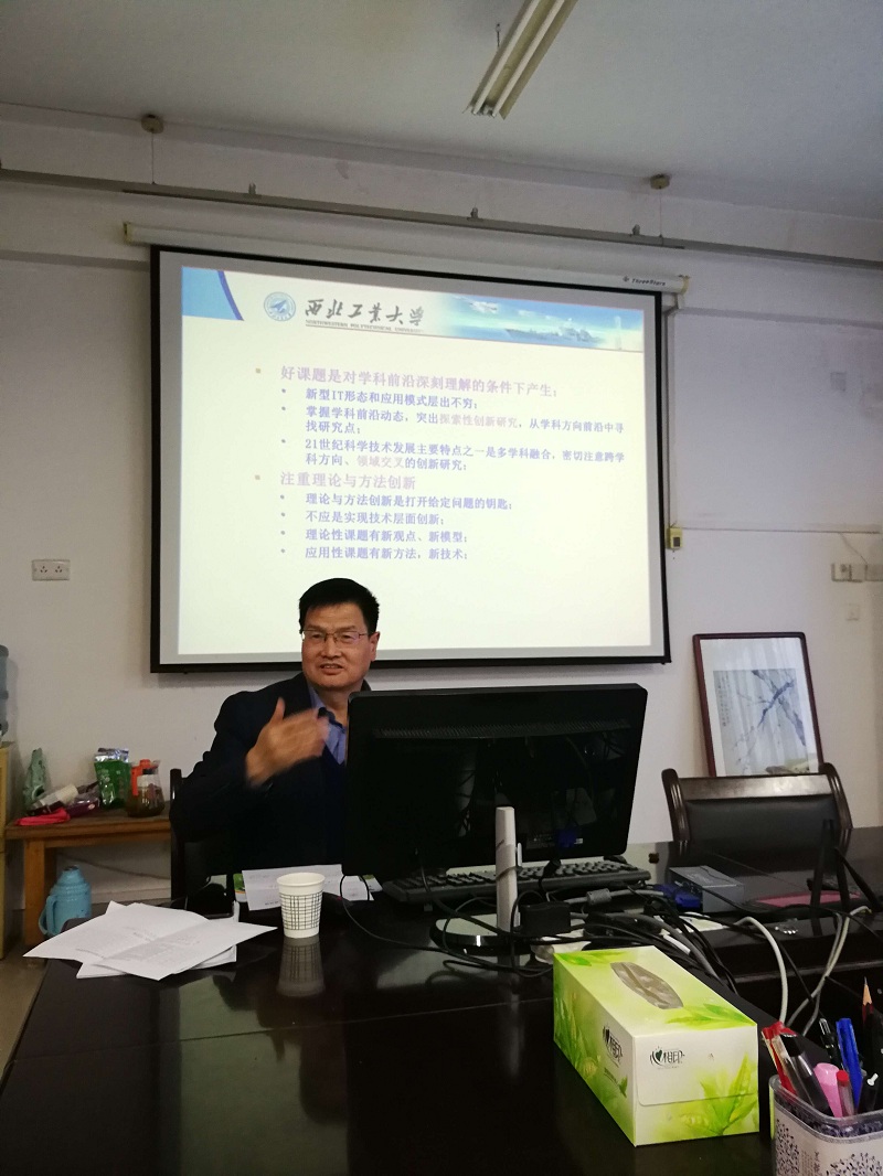 下午,周兴社教授站在战略高度,强调要充分认识国家自然科学基金的定位和特点,了解自然基金评审过程的特点,深刻理解学科前沿,注重理论与方法的创新,持之以恒,不断优化,长期积累。王小明教授首先讲述了陕西师范大学计算机学院基金申报基本情况及申请组织管理经验,并以自己2018年新获批的、取得5位同行专家4A+1B评议的基金申请书为例,逐句逐段讲解了申请书撰写中需要把握的重点事项和写作技巧。
