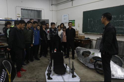 在车辆工程实验室,侯俊才老师、张军昌老师、石复习老师、张硕老师从汽车底盘测功机、发动机自动测控系统、车辆构造、车辆性能测试、发动机台架试验到油泵调试等方面,深入浅出向学生介绍仪器,鼓励同学们积极参与实验仪器探索,感受知识的魅力、科技的光辉。