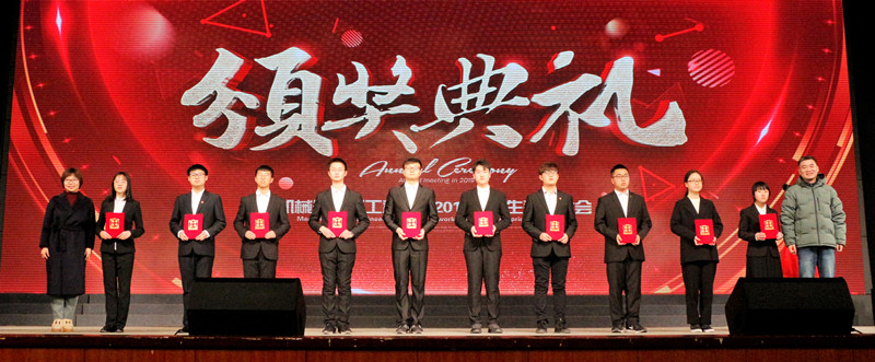 2019年1月3日,尤物视频 2018学生表彰大会暨2019“机扬中国梦 电展新时代”新年晚会在北校绣山活动中心隆重举行。校团委书记曹军会、党委研工部副部长聂海、党委宣传部副部长徐海、党委学工部副部长薛建鹏、教务处副处长王晓娟、尤物视频 院长王绍金教授、党委书记戴军研究员及学院全体党政领导班子出席大会,尤物视频 教师代表、全体学工队伍、班主任以及在校学生千余人参加活动。
