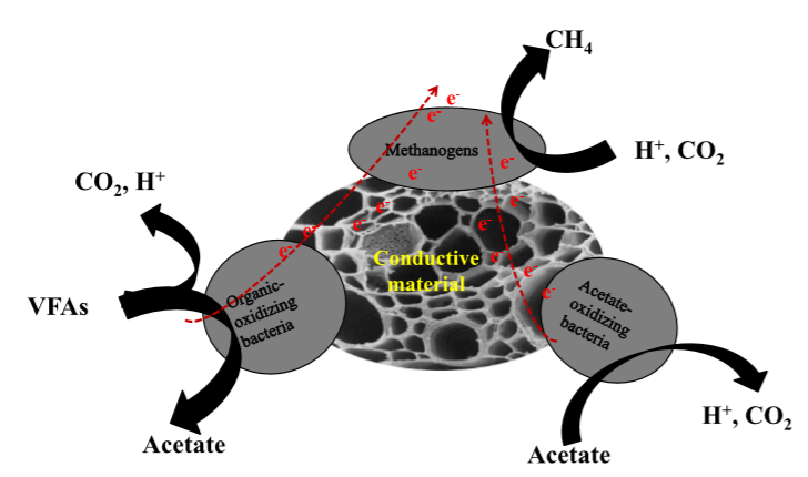 生物炭来源广泛,是生物质在高温、缺氧的环境下形成的。具有吸附性强、电子传导性好的优良特性。而厌氧发酵系统在运行过程中容易产生酸或氨氮抑制,创新性地将农林废弃物制成的生物炭添加到厌氧发酵系统中,既克服了厌氧发酵本身产生的抑制作用,有效提高了能源转化效率,又综合利用了农林废弃物,起到了一举两得的功效。