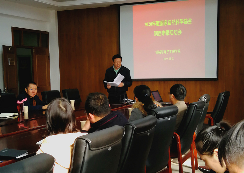 2019年11月8日下午,尤物视频 2020年国家自然科学基金申报启动会在学院二楼会议室隆重召开。启动会由王绍金院长主持,拟申报2020年国家自然科学基金项目的尤物视频 、信息学院老师、部分博士后、研究生共40余人参加了本次启动会。