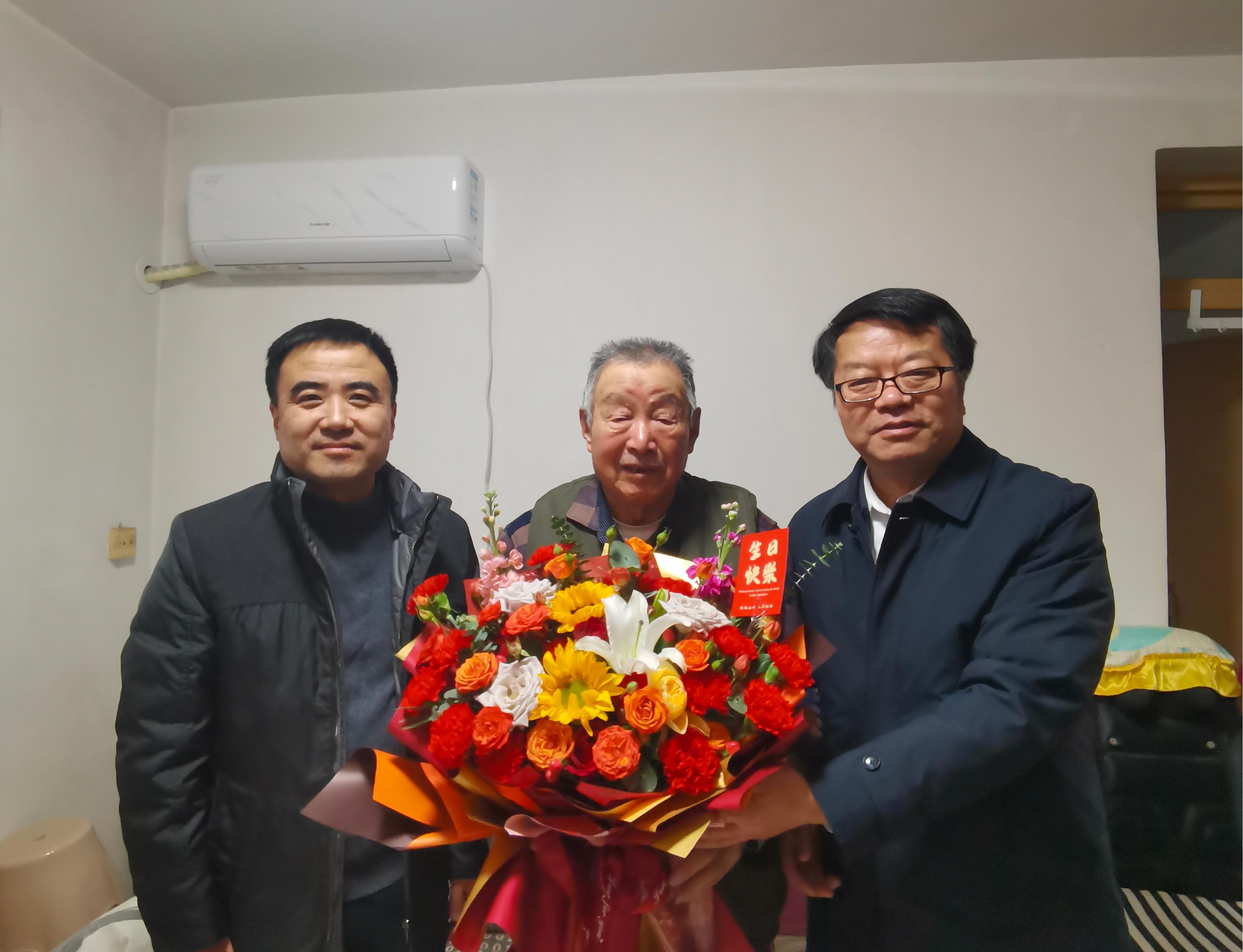 1月13日上午,在新春佳节即将来临之际,学院党委书记王雄与学校离退休处等领导一行前往尤物视频 退休教师陈新友老师家中看望慰问,向当天恰逢95岁高寿的陈新友老师致以生日祝福和新春问候。