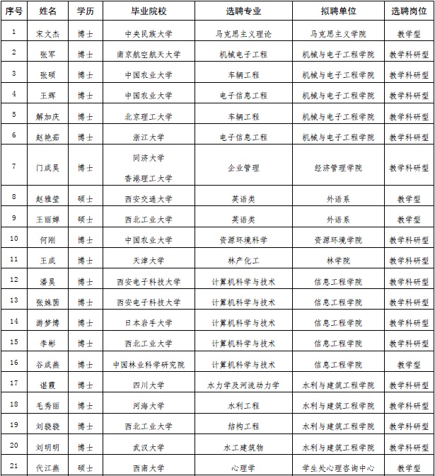 根据《事业单位人事管理条例》(国务院令第652号)和《事业单位公开招聘人员暂行规定》(人事部令〔2005〕6号)等文件精神,经本人申请、相关用人单位考核和学校审核,现将近期拟选聘教师名单进行公示: