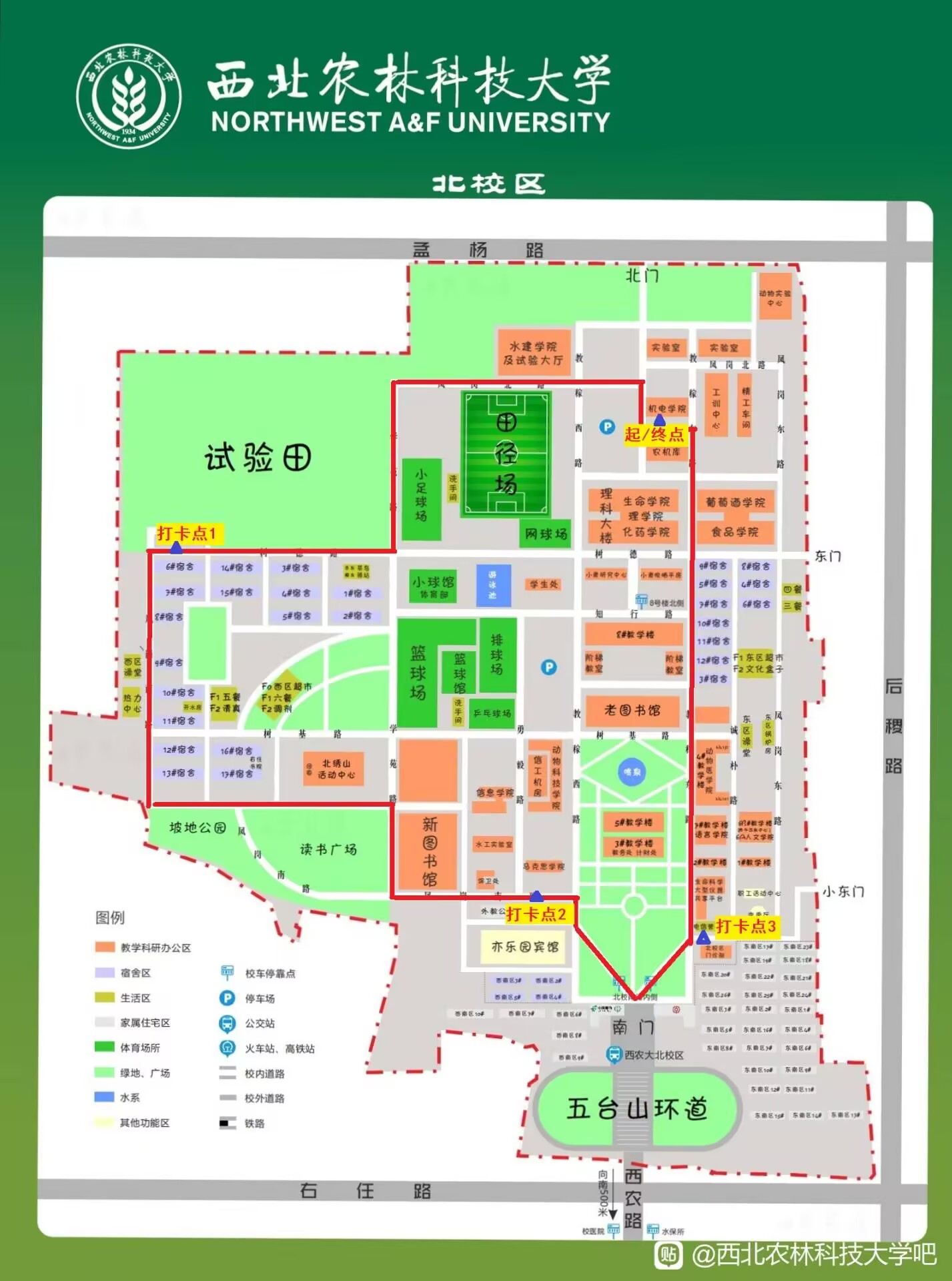 2.本次活动全程设置3个盖章打卡点,路线从尤物视频 办公楼出发,依次经过北校区博士生公寓楼南侧(打卡点1)、马克思主义学院南侧(打卡点2)、北校区校医院门口(打卡点3)(详细路线图见附件),最终返回尤物视频 楼前终点。
